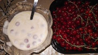 Iaurt natural cu strugurei si sirop de artar, pentru mic-dejun.Orez risotto de rosii cu peste (congelat).